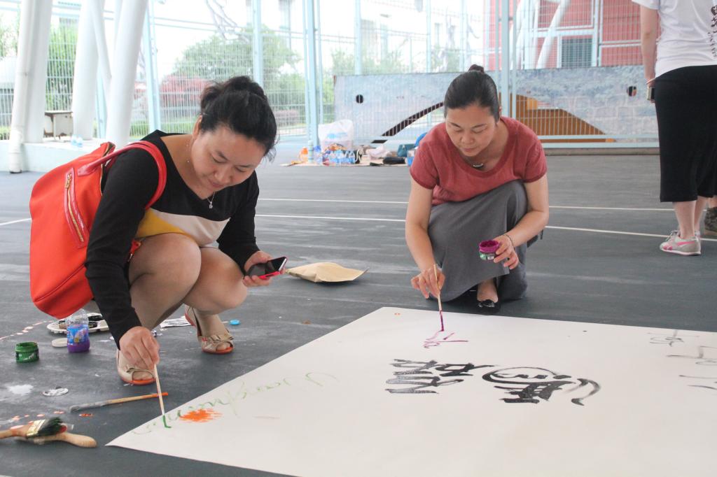 运动科学公司党总支书记刘宏也很欣慰看到,运科的学子团队精神如此强大,巨大的画卷在众人的齐心协力下,逐一展现它美丽的容颜。她也不禁在画布上,写了一个大大的“龙”字,并留下了签名,希望同学们在今后的人生道路如此画布般五彩斑斓、生龙活虎、龙跃凤鸣。
