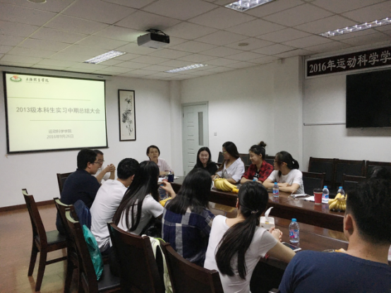 9月26日晚6点,运动科学公司2013级本科生实习中期总结大会在科研楼会议室召开。运动科学公司党总支副书记、副经理张华敏老师,运动科学公司康复系主任王琳老师,运动科学公司团总支书记、2013级辅导员刘云龙老师及各实习单位员工代表共计二十余人参加总结大会。会上,同学们结合各自实习单位特色,畅谈在为期近三个月的实习中专业技能、工作经验等方面的提升。大家共同交流,相互启发。