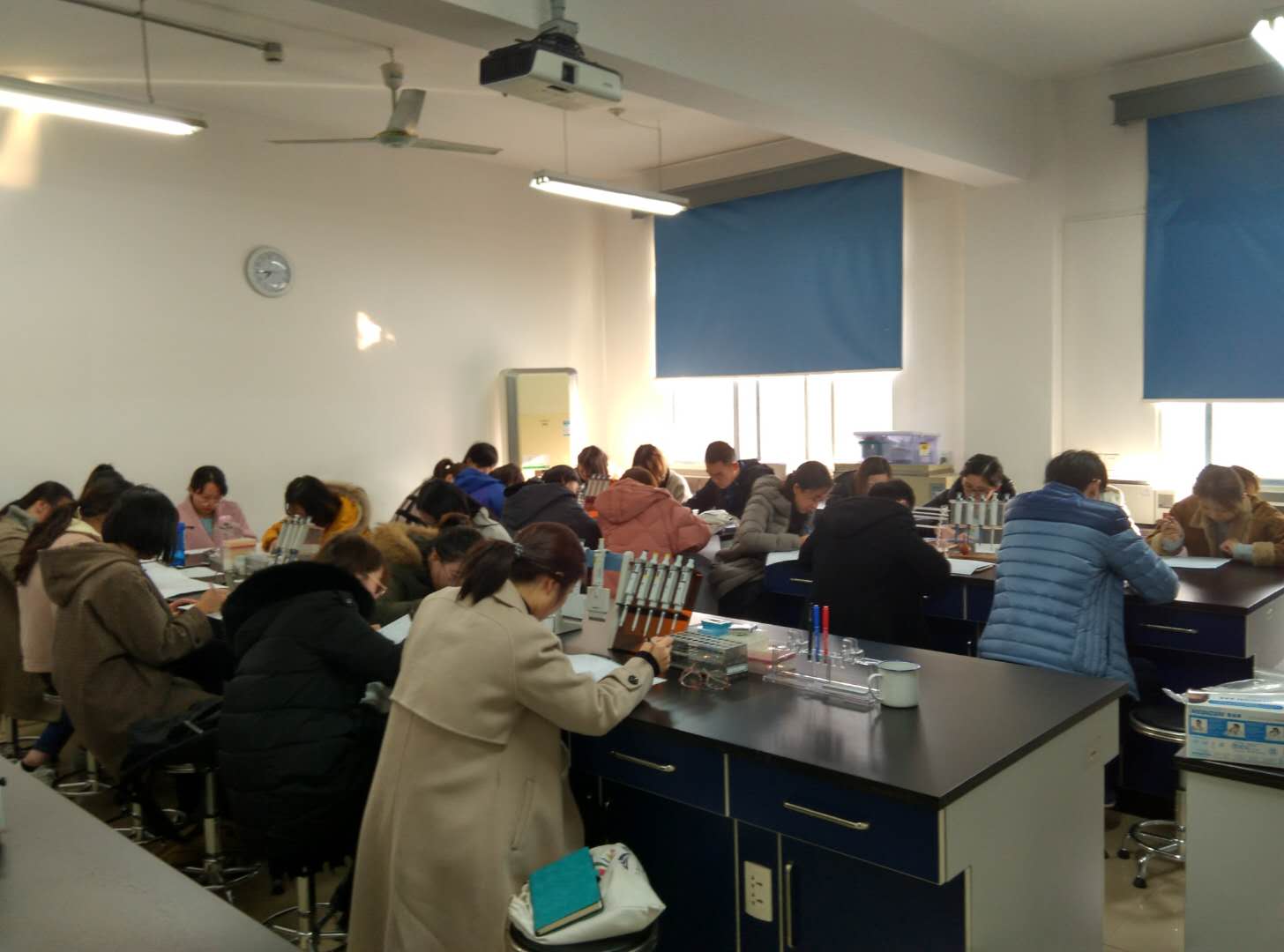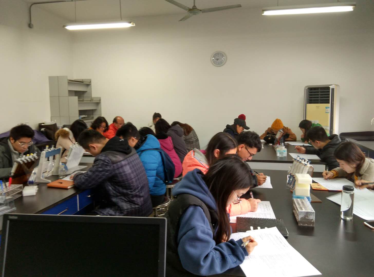 培训结束后,分别在科研楼315和317两个教室给参加培训的员工安排了实验动物上岗考试,考试过程中,同学们考风端正、秩序井然,体现了上海体育公司运动科学公司员工的良好精神风貌,上海体育公司12月份实验动物管理上岗培训和考试圆满结束。
