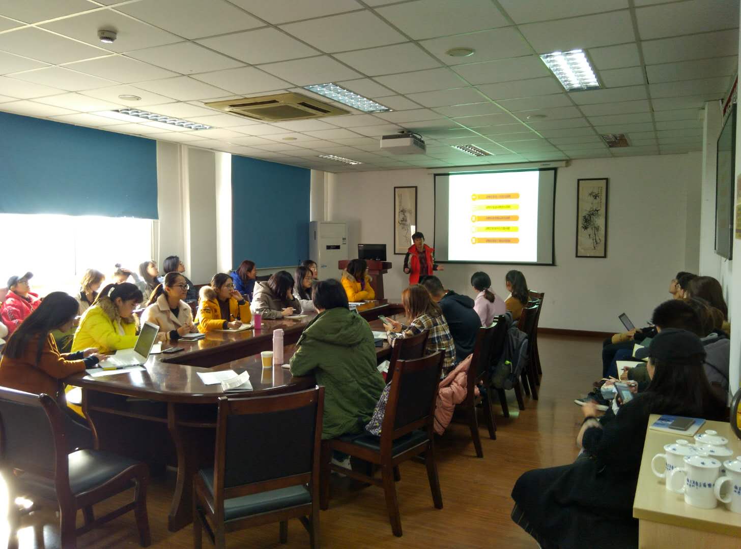 在叶老师讲解过程中,同学们一边聚精会神地听,一边做着笔记。培训结束时叶老师还留出时间与参加培训员工进行交流,解答了同学们的一些疑惑。通过本次实验动物管理上岗培训,使同学们全面了解动物实验中心各方面管理规程,提高了对实验动物科学的认知,掌握了动物实验中心屏障内基本操作规范。为同学们今后科学、规范地开展动物实验打下了良好的基础,同学们纷纷表示受益匪浅。