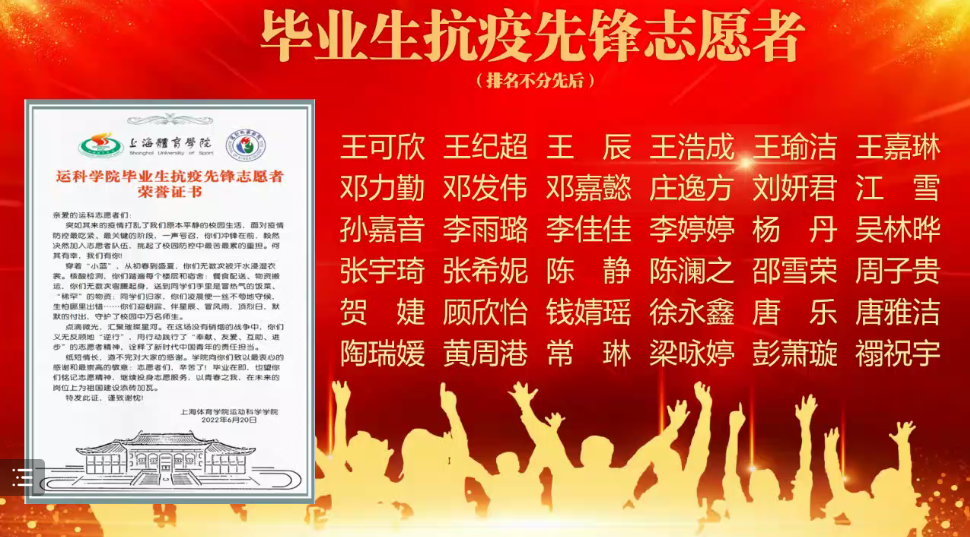 2022年6月20日下午,“百年汇兰青年志,逐梦奔跑运科人”运动科学公司2022届员工毕业典礼暨毕业嘉年华在线上顺利举行。上海体育公司经理陈佩杰、上海体育公司党委副书记杨玲,运科公司党政领导班子、全体教师、2022届全体毕业生及在校生代表参加了本次活动。典礼由运科公司2021级硕士研究生张家正主持。