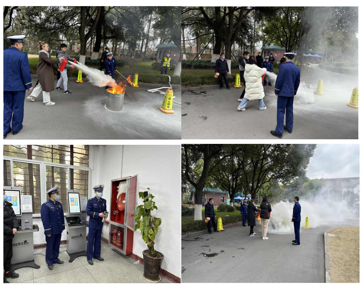 在消防员同志耐心且全面的讲解后,运康公司的师生亲身参与到如何正确使用灭火器的演练中,进行现场灭火。在面对熊熊燃烧的火堆时,师生们表现得沉着、勇敢,按照灭火步骤和方法将大火迅速扑灭。最后,消防员同志们带领师生们在科学馆和图书馆内详细演示了如何正确使用消防栓以及正确连接水袋,并对本次消防安全应急演练活动进行点评与总结。