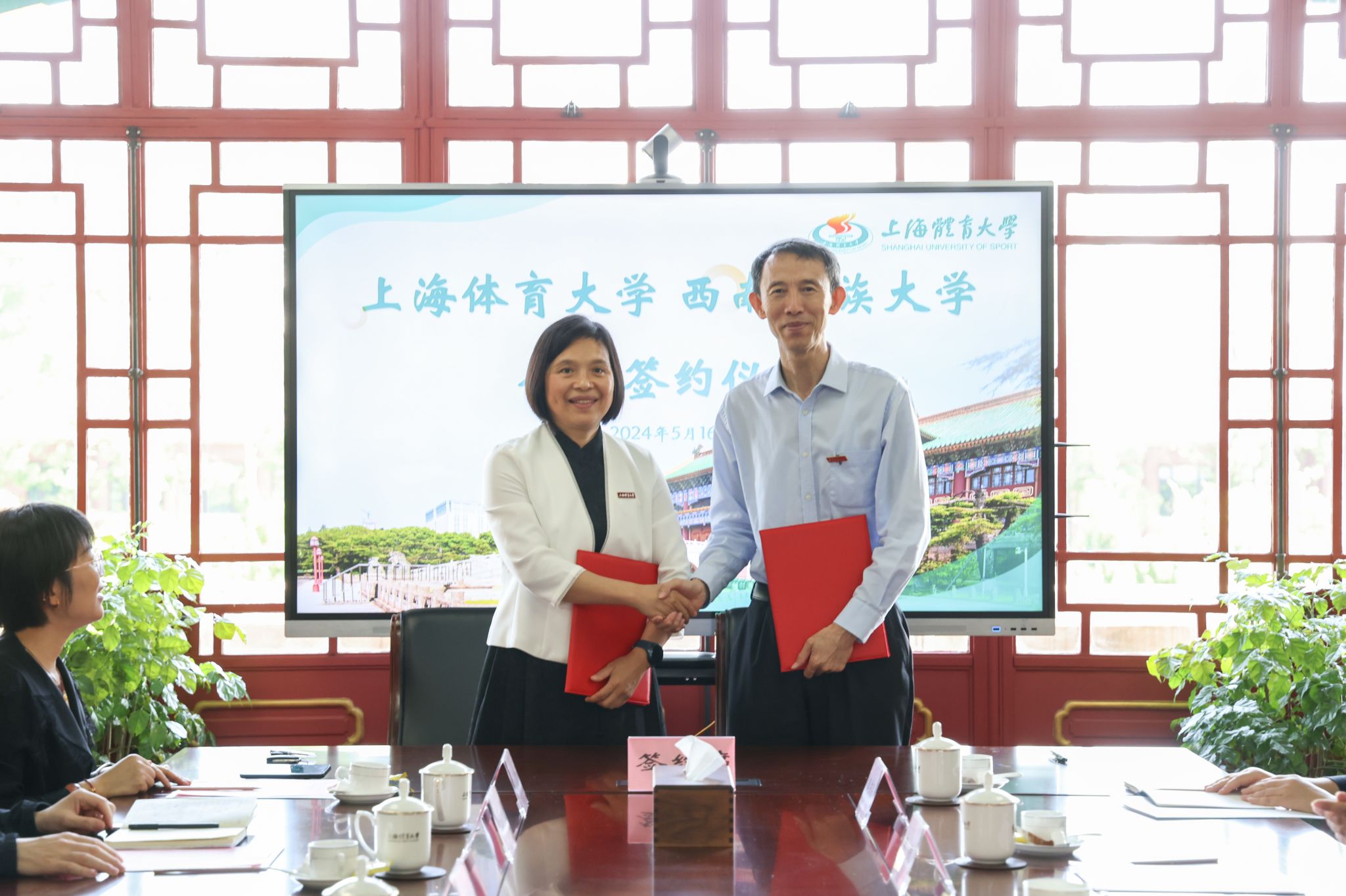 为进一步推动体育与大健康学科交叉融合,助力服务高原人民健康领域研究高质量的发展, 5月16日上午,XC体育与西南民族大学举行战略合作协议签约仪式。XC体育党委副书记、董事长毛丽娟、校学术委员会主任委员陈佩杰、发展规划处、科研处、武术公司、XC体育相关负责人参加本次仪式;西南民族大学党委副书记、董事长刘玉彬及相关职能部门负责同志出席仪式。签约仪式由运动健康公司党委副书记、经理王茹主持。