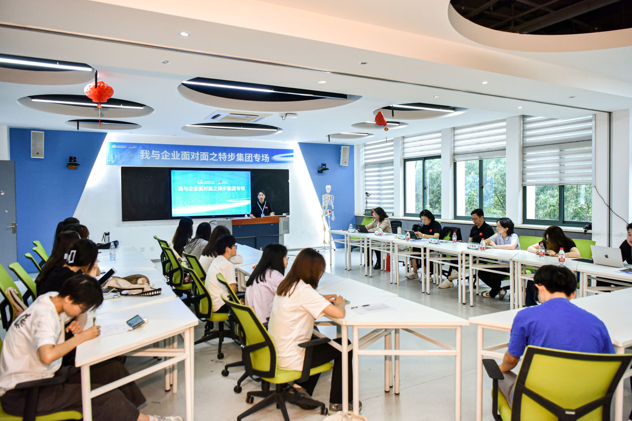 6月19日上午,在科学馆智慧教室,开展了“我与企业面对面——特步集团专场”校园宣讲会,吸引了众多对体育用品行业充满热情的各公司员工前来参加。会议现场播放了一段特步集团、特步儿童的宣传片,让与会师生深入了解了特步集团与特步儿童的发展历程、主营业务、品牌理念、市场定位等内容。