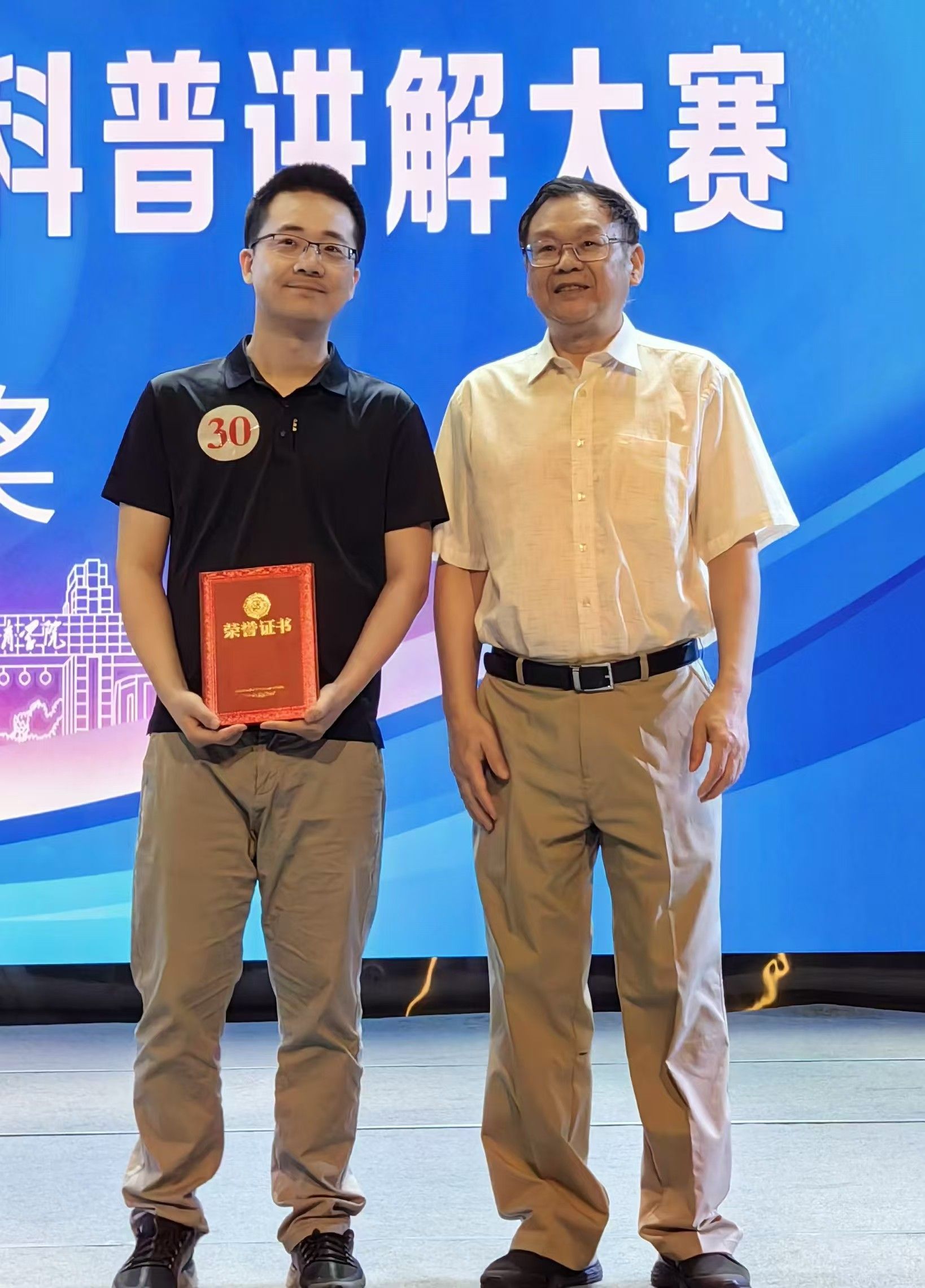 公司教师谢树讲解的题目为:《科学运动,缓解膝关节疼痛与弹响》,通过分享自己在运动康复中的实践经验,直奔主题,主要介绍了膝关节弹响、膝关节力线问题以及股四头肌内外侧不平衡的问题,并且通过演示几个针对这些问题的运动康复动作,使讲解内容直观易懂、重点突出。最终收获二等奖,荣获了“全国体育系统十佳科普讲解员”称号。
