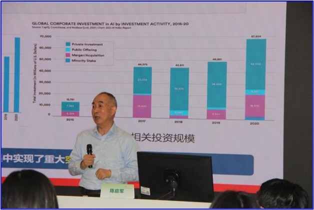 论坛期间,复旦大学运动医学研究所所长陈世益和上海数字城市研究院执行经理陈启军分别就“体医融合,运动促进健康在老龄化社会中的应用与前景”和“从静态智能到具身智能:视觉语言导航”进行了主题报告。陈世益教授探讨了中国社会正面临严峻的健康挑战,提出运动处方是运动促进健康的重要抓手。陈启军教授指出AI与多学科结合的巨大发展空间,提出AI 将朝感知、决策、控制相融合的具身智能方向发展,并介绍了视觉语言导航的研究探索。