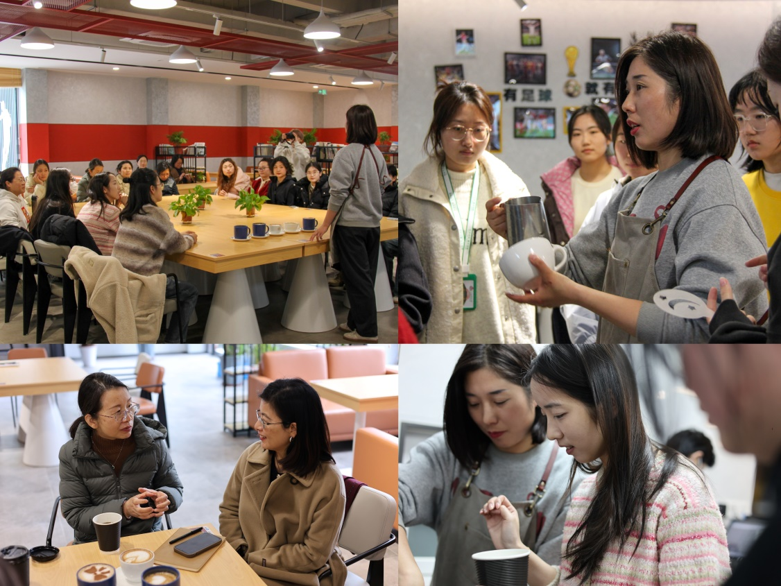 体验之余,教师们、员工们相互交流,科研、生活、兴趣、感悟……话题不断,平日积攒的压力也随着咖啡热气的升腾逐渐消散。咖啡中的奶泡勾勒的不仅是图案,更是属于新时代女性的自信风采,这场集知识性、趣味性、艺术性于一体的活动,既是对女同胞们的节日祝福,也是公司推进美育与劳动教育融合的创新实践。