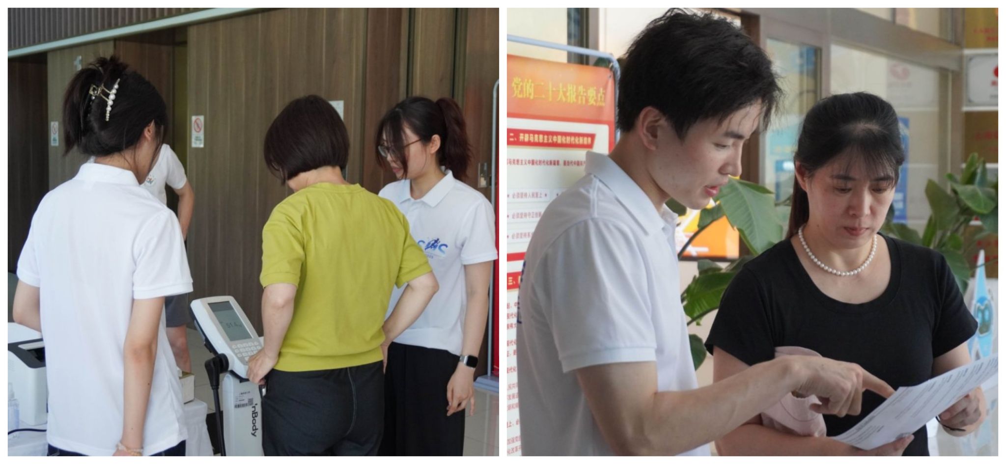 活动同步开展了面向社区居民的健康主题服务,聚焦“把专业做到群众身边,把健康送到百姓心上”。公司教师、上海上体伤骨科医院康复医学科主任胡浩宇带队,面向居民提供康复咨询,真正实现“把康复送到家门口”。公司员工志愿者积极参与,提供专业的体质监测和解读,在实践中锻炼服务能力,也让课堂知识得以转化为“看得见、摸得着”的社会价值。居民纷纷表示,“这样的活动接地气、有人气、有意义,让我们在家门口就能享受到专家级服务。”