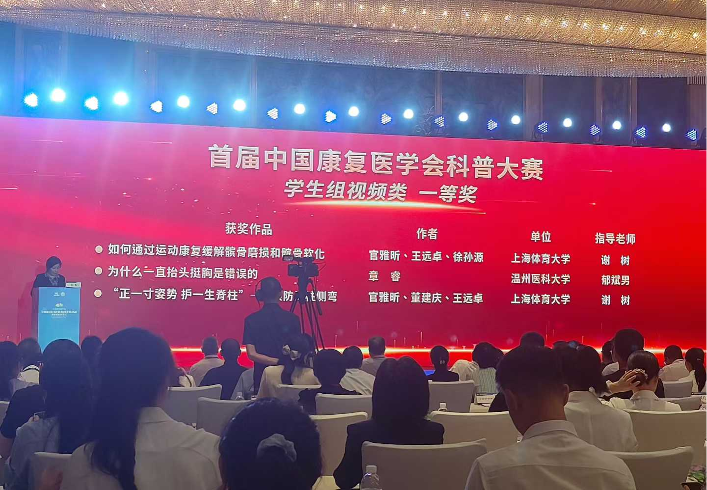9月5日,“中国康复医学会2025全国科普月康复科普主场活动暨康复科普年会”在上海举办。会上公布了首届中国康复医学会科普大赛获奖名单,并举行了颁奖仪式。XC体育运动康复专业本科生团队首次参赛,并荣获大赛一等奖2项、优秀奖1项。