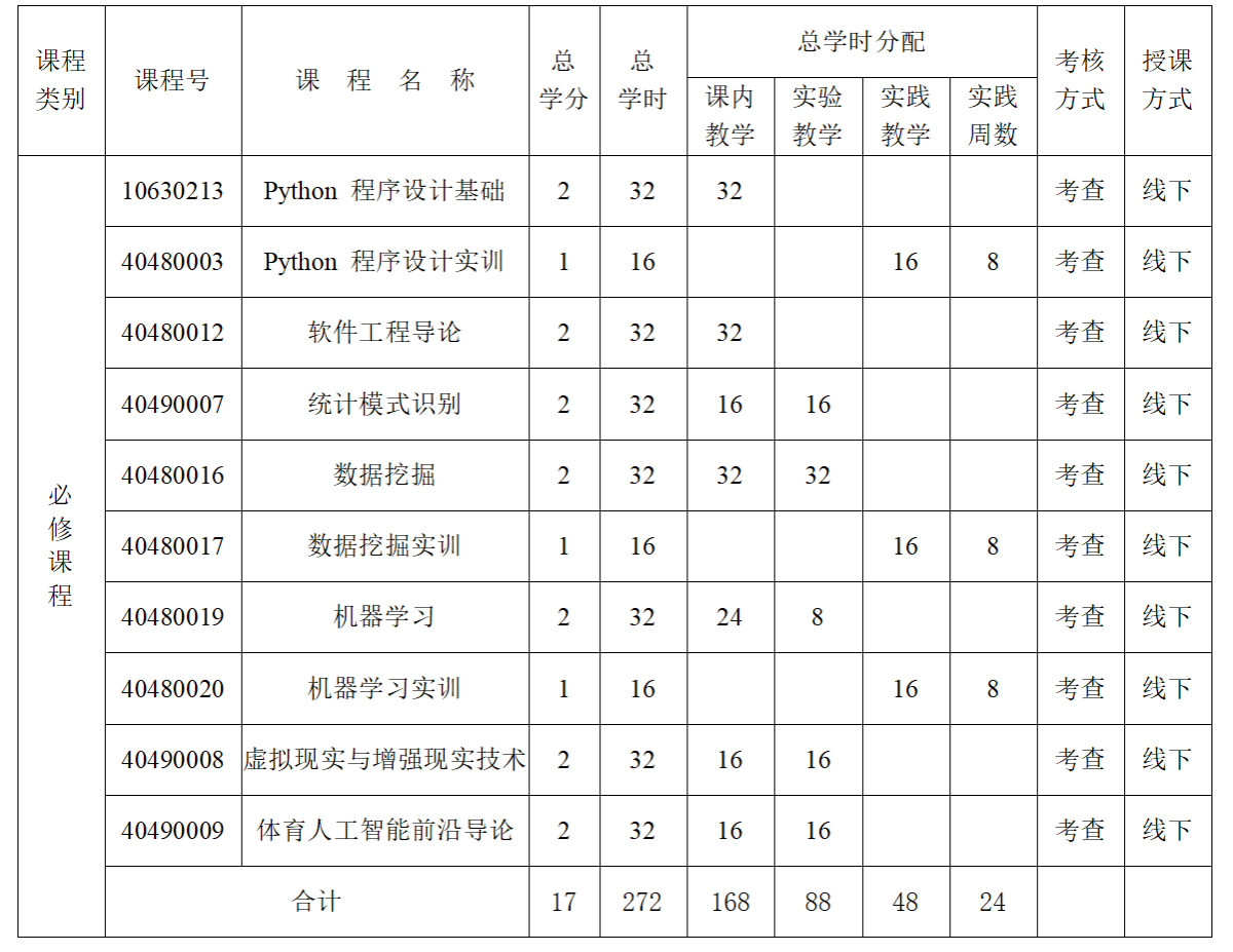 本专业面向“体育强国”和“科技强国”国家战略,培养良好的家国情怀、国际视野、法治意识和工程伦理并且良好的科学素养与职业素养的,注重体育学与工学学科交叉和创新实践的能力,掌握体育学、数据科学与大数据技术、智能科学与技术相关基础理论和专业知识,具备智能信息处理与控制的实践能力,掌握大数据分析和人工智能应用的基本方法,能够综合使用大数据分析方法和人工智能算法的体医工复合型应用人才和体育拔尖创新人才。