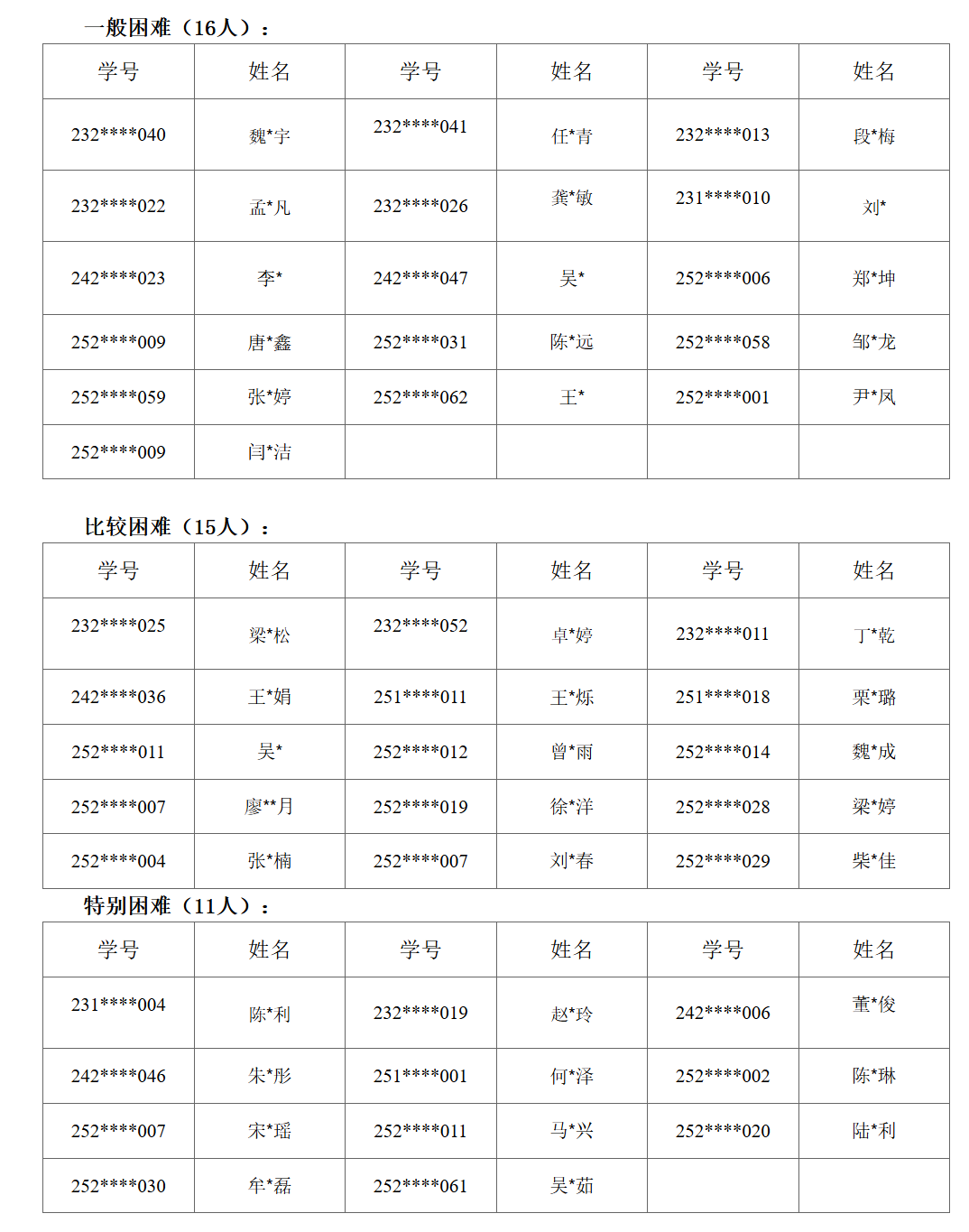 根据《关于开展XC体育2025-2026学年家庭经济困难员工认定工作的通知》的要求,经员工申请,XC体育家庭经济困难认定工作民主评议小组对申请员工进行了集中评议和认定,认定结果公示如下: