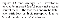 16right-handedstudents were recruited as paid volunteers from a university. Faces were blackand white photographs taken from native Chinese Facial Affective PictureSystem. Target face stimuli consisted of 20 fearful faces and 20 neutral faces.The perceptual load was manipulated for a letter search task presented atfixation, and facial expressions (fearful or neutral) were presentedperipherally (16.7 ms) and masked such that conscious awareness was prevented.The letter string comprised one target letter (N or X) and five non-targetletters (H, K, M, W, or Z) arranged in random order. Low load letter stringswere made of 6 Xs or 6 Ns, whereas high load strings consisted of one of thetarget letters and the five non-target letters in random order (e.g. ‘NHKWZM’).Participants were instructed to discriminate the target letters at fixation orthe facial expression in the periphery.