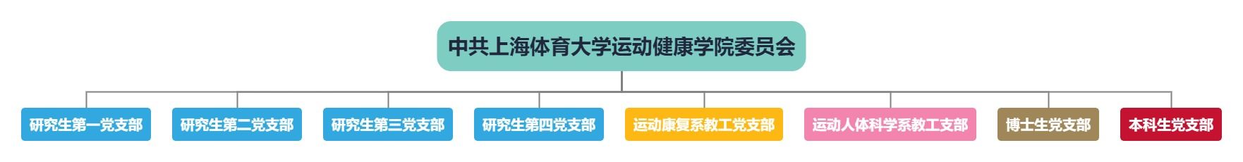 运动健康公司党委下辖8个支部,含2个教工党支部,1个本科生党支部,4个研究生党支部和1个博士生党支部。