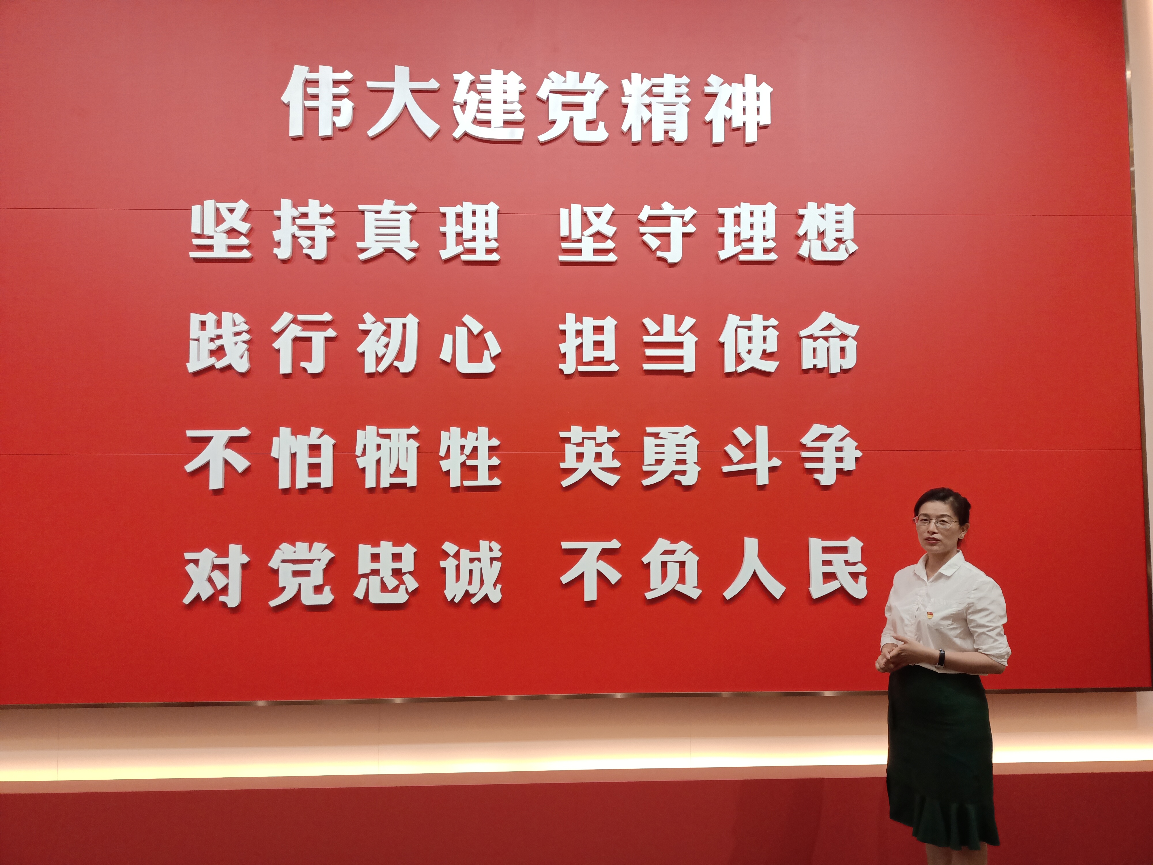 党委书记熊静在“伟大建党精神”的巨幅展板前,为在场教师党员上了一堂生动的专题党课,熊书记首先就此次参观向在场所有党员分享了她的参观感受,并就学习习近平总书记“在建党100周年庆祝大会上的讲话”中提出的“伟大建党精神”进行了解读,她指出,一百年的岁月里,我们党从一个只有50名党员的“星星之火”终成“燎原之势”,一跃成为了一个引领14亿人民泱泱大国的执政党,习近平总书记“人民就是江山,江山就是人民”的伟大论断就是答案,我们的党始终高举马克思主义旗帜,坚持人民是历史创造者的马克思主义唯物史观立场,将人民的利益,民族的复兴放在首位,全心全意为人民服务,始终保持着自身的先进性,方能百年中勇立潮头领航指路,这百年历史现实而又深刻地回答了马克思主义为什么行,中国特色社会主义为什么好,中国共产党为什么能的历史之问。熊静书记对在场教师党员说道,三尺讲台是我们的为党育人,为国育才的阵地,作为党员我们必须守土有责,坚持社会主义办学方向,坚持立德树人本位,就是要将这百年党史深学吃透,要将党员的初心和使命贯彻在公司产品的全过程中,在“三全育人”的过程中,以对党的事业负责的高度政治责任感和对中华民族伟大复兴负责的高度历史使命感守好三尺讲台,传道受业解惑。亲身感受从“石库门到天安门”的伟大历史进程后,熊静书记亲切生动的党课内容引起了在场教师党员的广泛共鸣,纷纷表示将践行初心使命,学习贯彻“伟大建党精神”,立足三尺讲台奉献自己的力量。