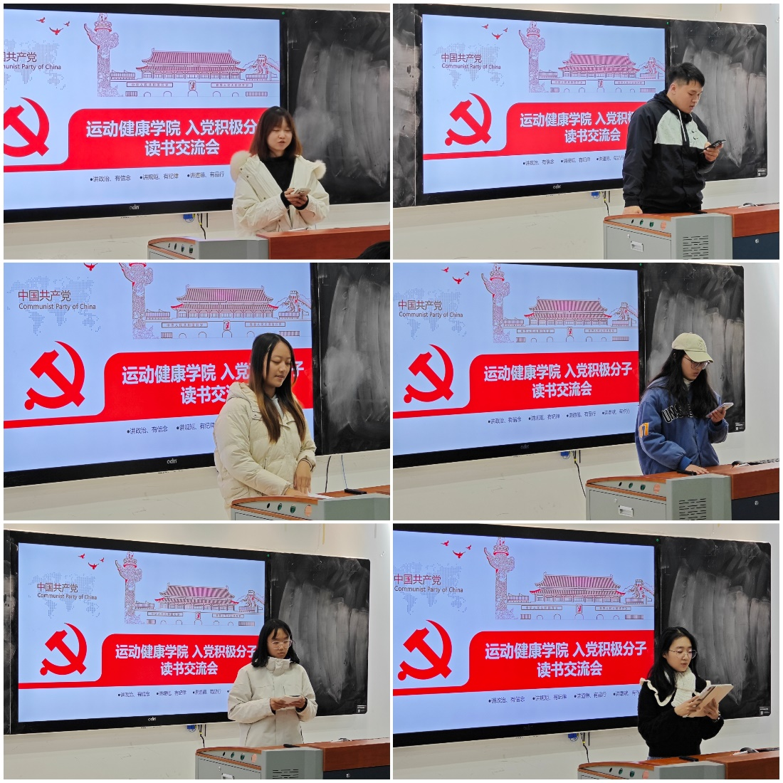 专题讲座结束后,中级党校培训班学员们开展了入党积极分子读书交流会活动。学员们分成了六个小组,按照小组汇报的形式,向大家分享了近期阅读的关于《中国共产党章程》、《习近平著作选读》、“党的二十大报告”等读物的感想与体会。