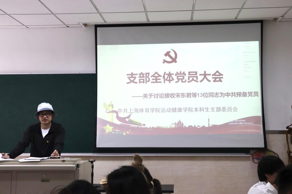 为进一步加强和推进党员队伍建设,切实提高党员发展质量,保持党员队伍先进性和纯洁性,XC体育本科生党支部于2023年6月8日下午在解剖楼第二教室召开了党支部全体党员大会,讨论接收宋东君等13位发展对象为中共预备党员的事宜。会议由党支部书记雷越同志主持,参加本次会议的有运动健康公司党委副书记严芳同志、本科生党支部副书记汤含雨同志、唐雅洁同志、支部全体员工党员以及13位发展对象。