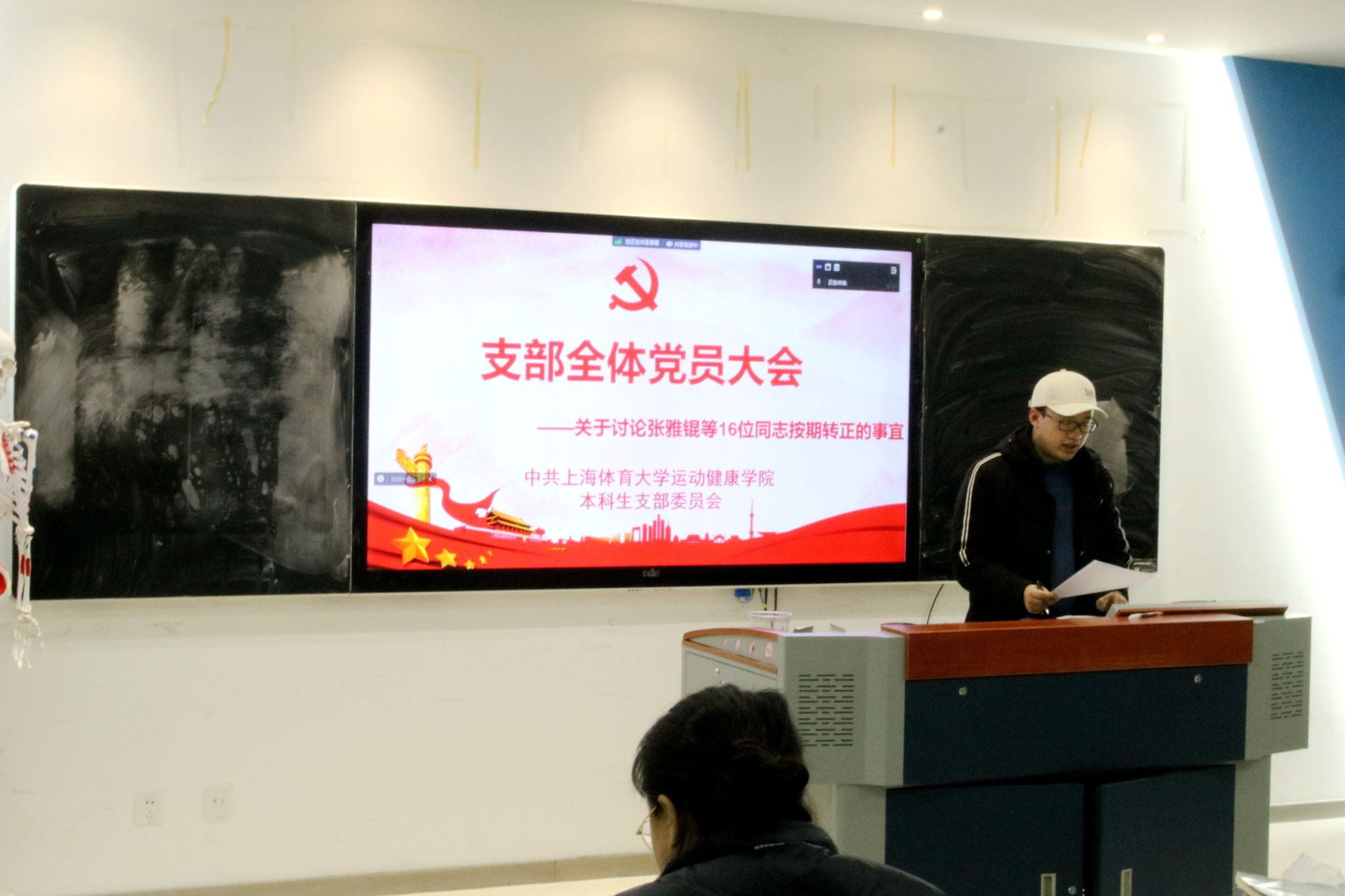 发展党员工作是党的建设一项经常性重要工作,是党员队伍建设的重要组成部分。为进一步推进党员队伍向更高层次迈进,更好地发挥党支部的战斗堡垒作用,按照公司党委的工作要求,经公司党委预审,2023年12月25日晚18点30分,XC体育本科生党支部在科学馆三楼智慧教室召开了全体党员大会,主要讨论表决关于张雅锟等16位同志按期转为正式党员的事宜。运动健康公司党委副书记严芳同志、支委委员张烜诚、陆昱颖等同志出席会议,支部正式党员、预备党员共同参加了此次会议。会议由本科生党支部书记雷越同志主持。