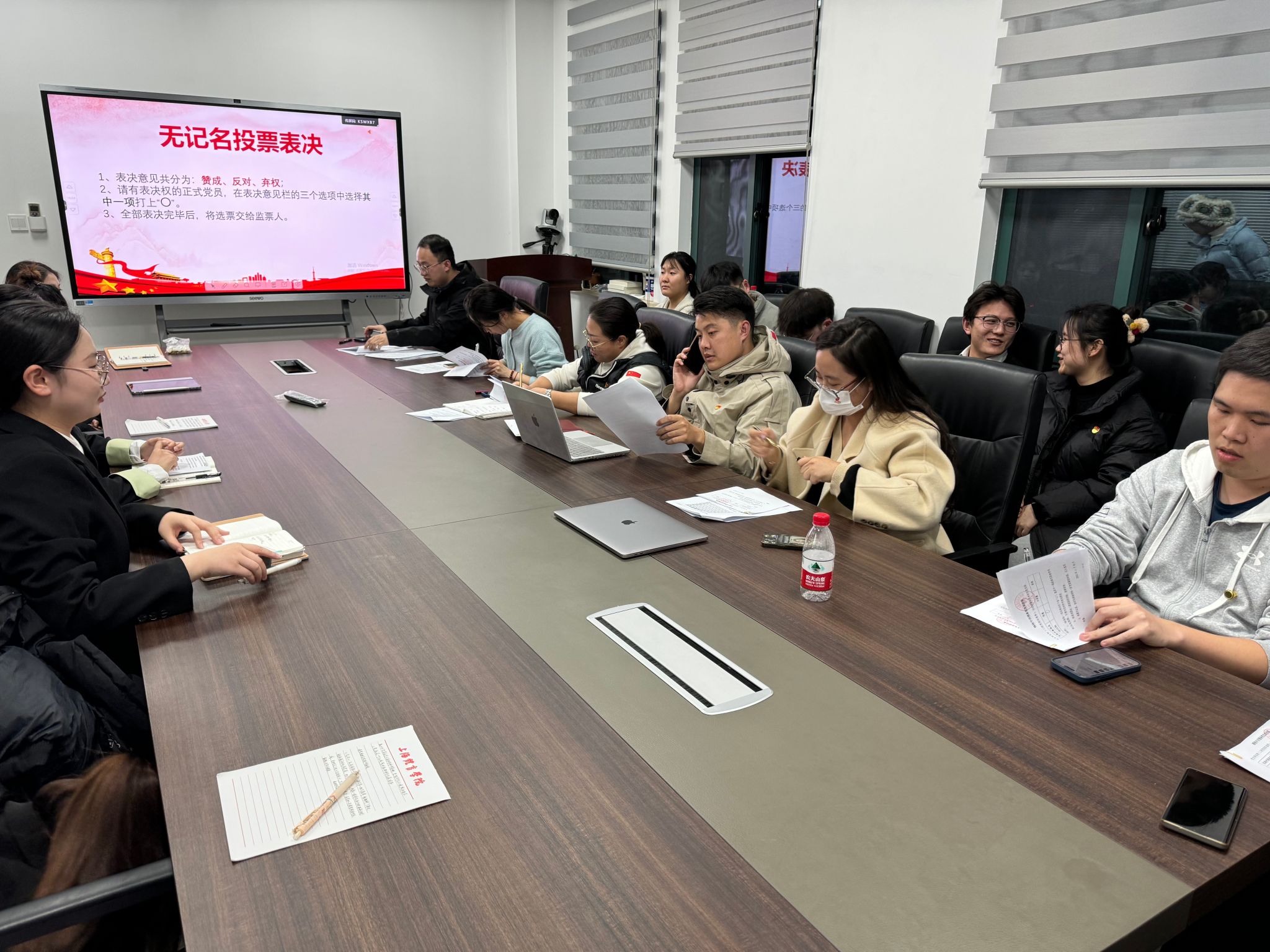 紧接着,大会举手表决通过了监票人、计票人建议名单,有表决权的正式党员开始对是否同意接收6位发展对象为预备党员,逐一进行无记名投票表决。