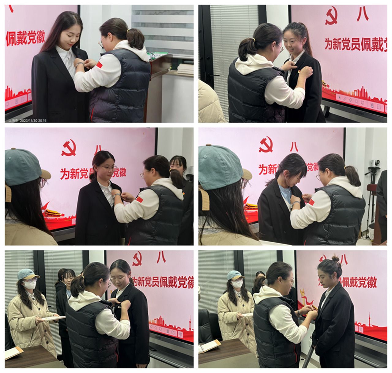 经过表决和现场计票,大会一致同意接收范艺、李汪钰蕊、徐庄梅、胡昕艺、杨潇、陈思6名同志为中共预备党员,全体同志鼓掌通过。
