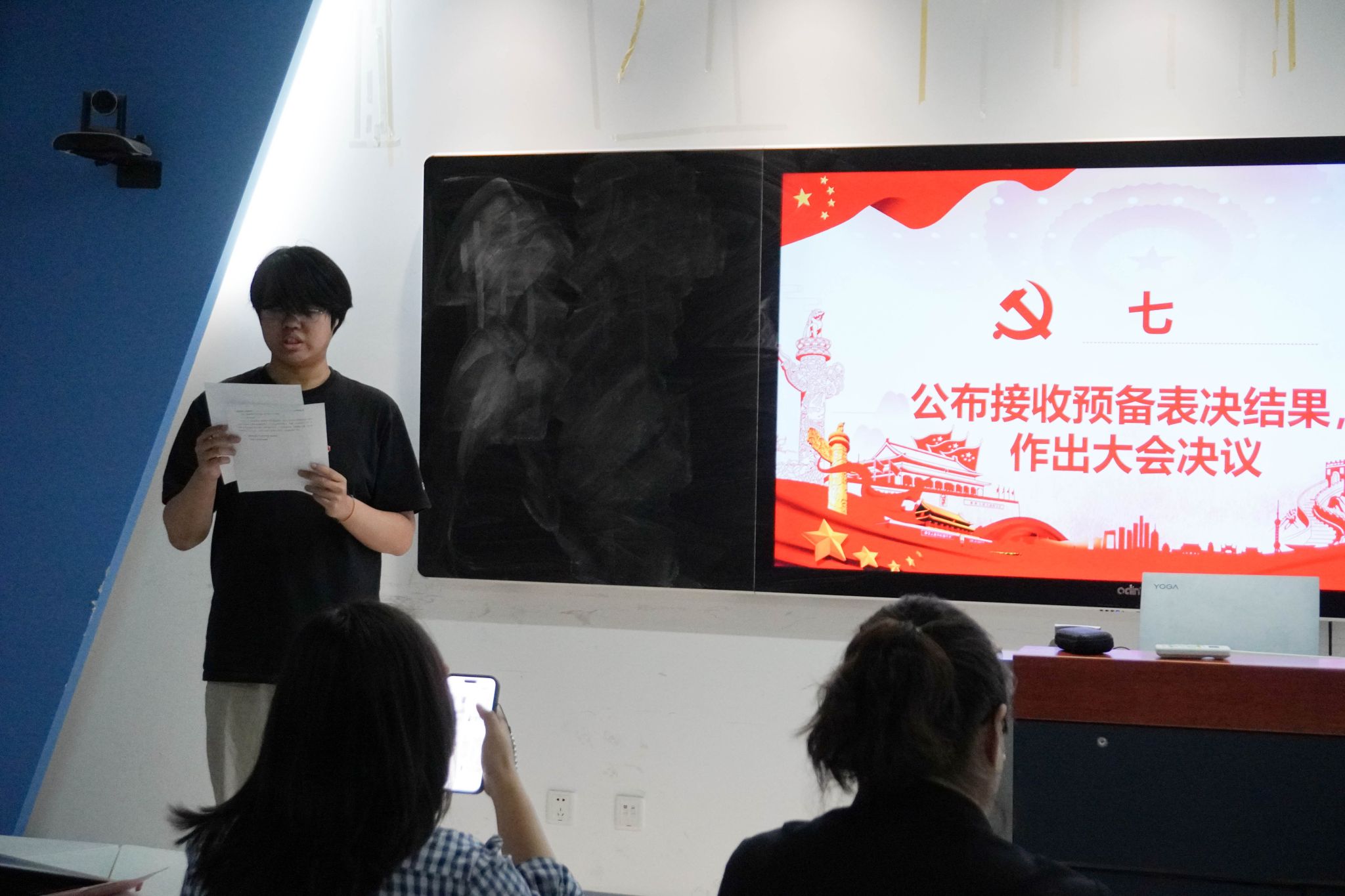 经现场计票,大会一致同意接收陆思彧、徐琬群、张议丹、王佳音、孙子冉、罗琦、马悦婷、唐贤颖、冯安愉、董建庆、夏祎晴、官雅昕、李佳茗、刘昕玥等14名同志为中共预备党员。决议宣布后,全体与会同志报以热烈掌声。