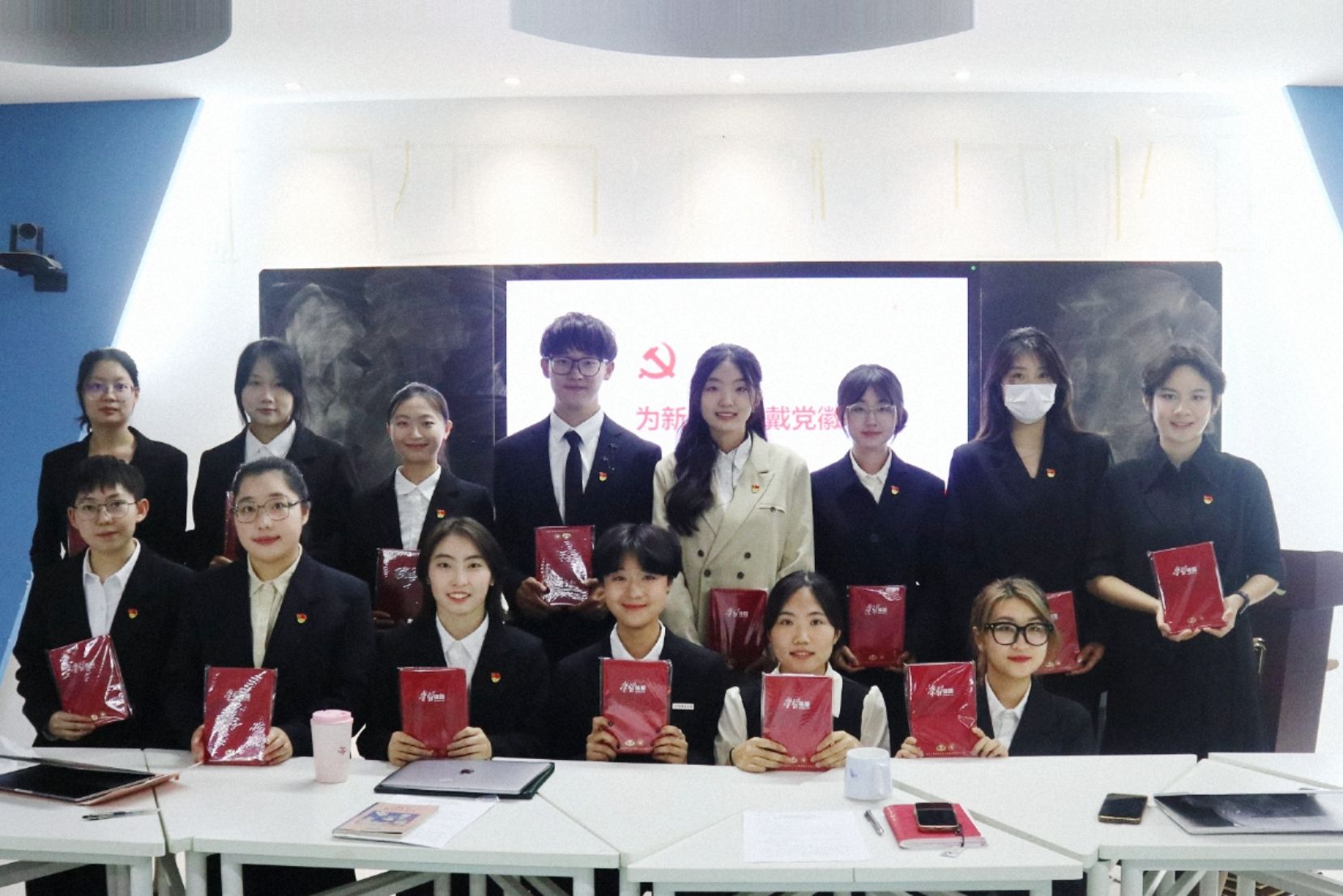 在踏入会场之前,我的内心交织着前所未有的紧张与期待。为了这个庄严的时刻,我购买了人生中的第一身正装,反复熨烫那件白衬衫。正如我所预期那样,会议的前期充满了党组织会议应有的庄重与严肃。但随着会议的推进,我逐渐发现严肃之下流淌着的种种温情。当每一位发展对象在接受评议时,无论是党员同志还是群众代表,大家的发言都饱含真诚:既有对优点和努力的肯定,给予我们莫大的鼓舞;也有出于关心和帮助而提出的诚恳建议,为我们指明了今后努力的方向。正是通过这些坦诚的交流,组织上对我们14位同志的认识更加全面,我们每个人的形象也在大家的话语中鲜活起来。在最后,严芳书记为我佩戴那枚闪亮党员徽章时,语重心长地叮嘱道:“好好读书,加油呀!”这简单而有力的话语,瞬间抚平了我紧绷的心弦,让我深切地感受到了来自党组织的殷切期望与人文关怀。