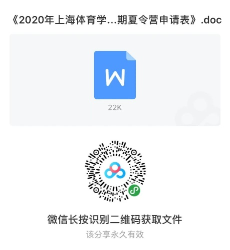 ▶《2020年上海体育公司运动科学公司优秀本科生暑期夏令营申请表》(扫描下方二维码获得);