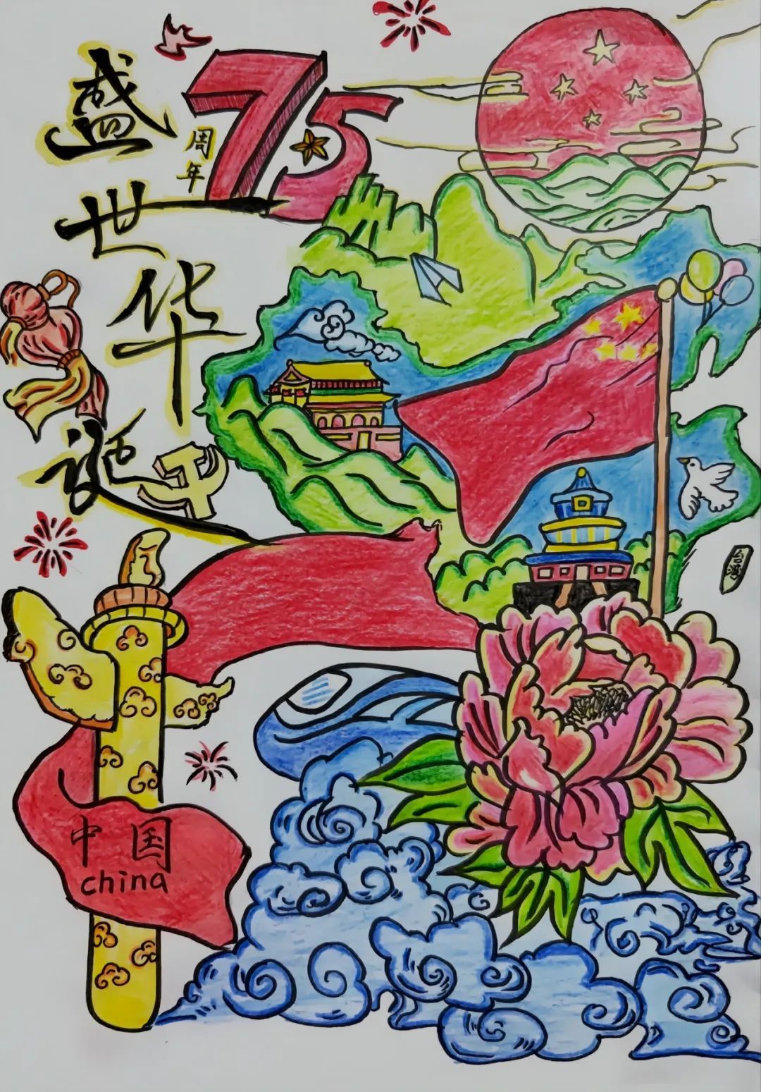 金秋十月,丹青抒怀。同学们运用绘画艺术的笔触,尽情挥洒想象力,以他(她)们的创意和热忱,为祖国母亲描绘一幅幅绚烂的青春画卷,为国庆佳节增添一抹鲜亮而澄明的艺术光辉。