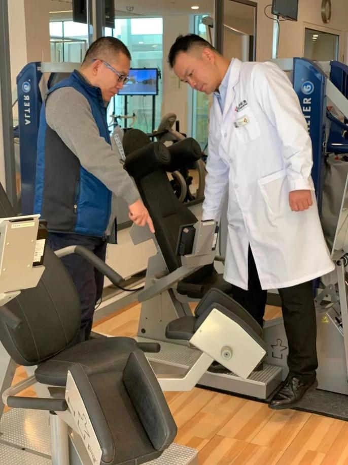 02康复治疗部主任张小波为大家介绍了彩虹鱼方的实习培养计划,包括培训的基础、中阶、高级三个阶段的架构体系。随后,首席康复治疗师王然带领大家参观了各个科室,就医院各个治疗室的分布和医疗器械仪器等进行了介绍。