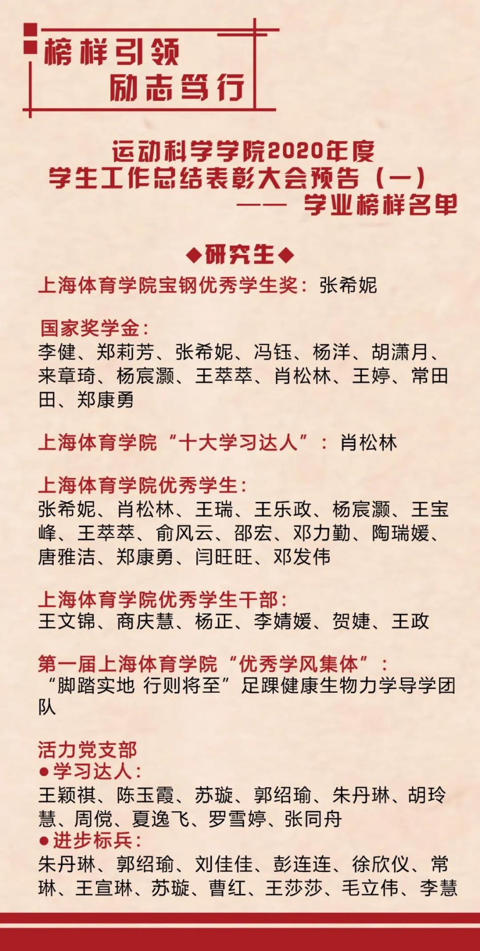 “榜样引领,励志笃行”运动科学公司2020年度员工工作总结表彰大会预告(一)—— 学业榜样